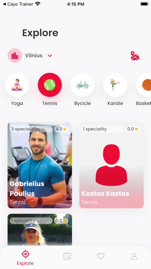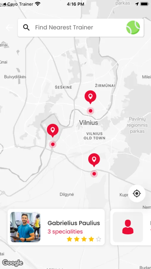 - Pagal Jūsų lokaciją atrenkami arčiausiai treniruotes vykdantis treneriai.