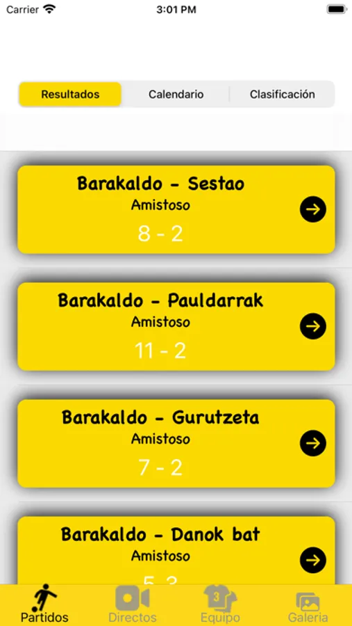 Podrás ver los partidos en directo y ver todos los partidos anteriores.