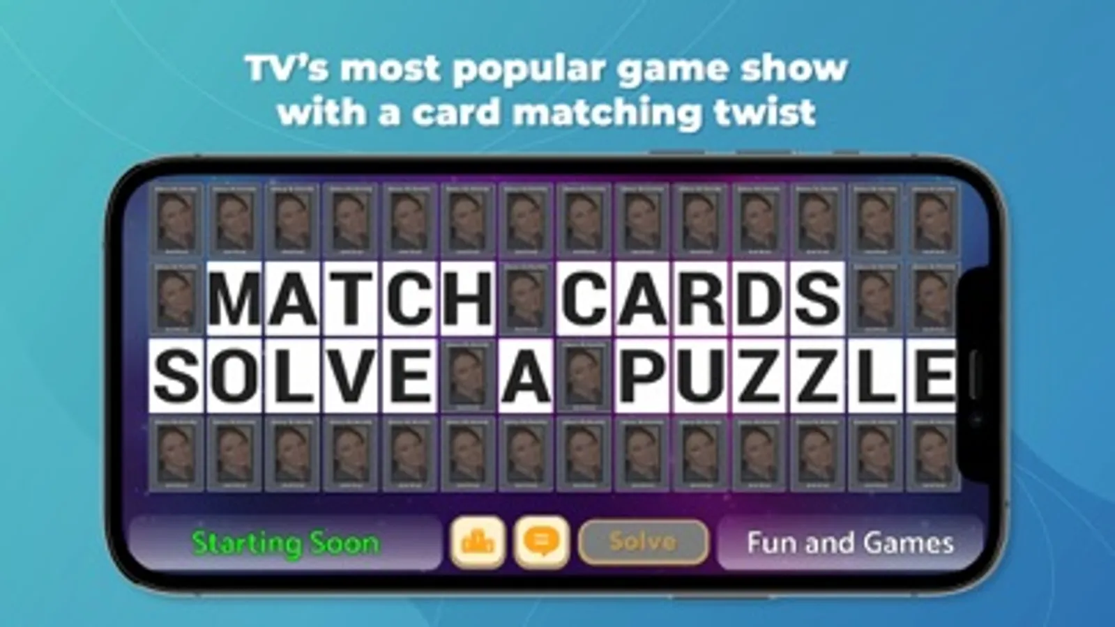 Your favorite game show word puzzles combined with the classic memory game. Find a card or photo match and spin the wheel to guess letters in the puzzle. Solve the puzzle and earn “game money” for in-app prizes.