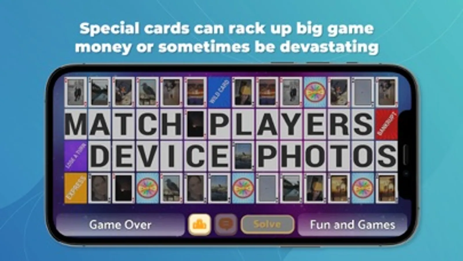 Challenge family or friends to a game of Deal of Fortune! Compete to solve the puzzle and earn the most “game money”! Use your own photos as the cards to match to send a special message to loved ones and create a personalized game.