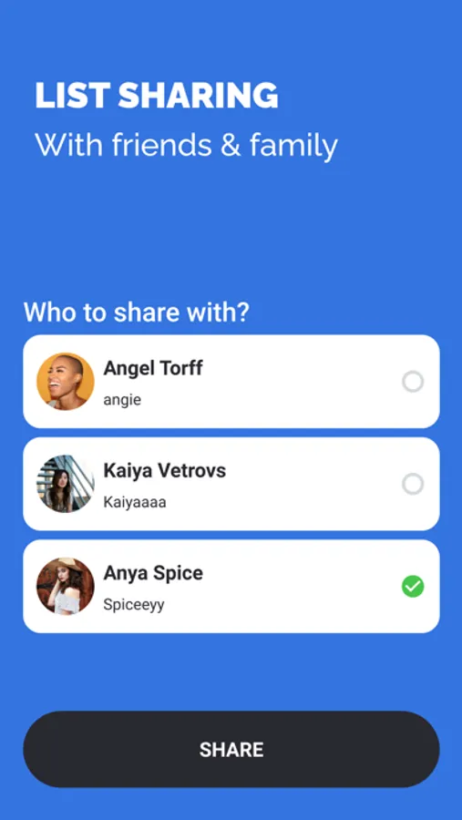 - List sharing with friends and family