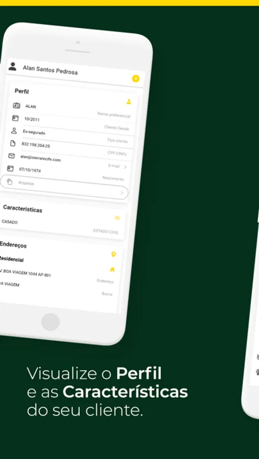 - Consulte o perfil do seu cliente, suas características, seus contatos e endereços.