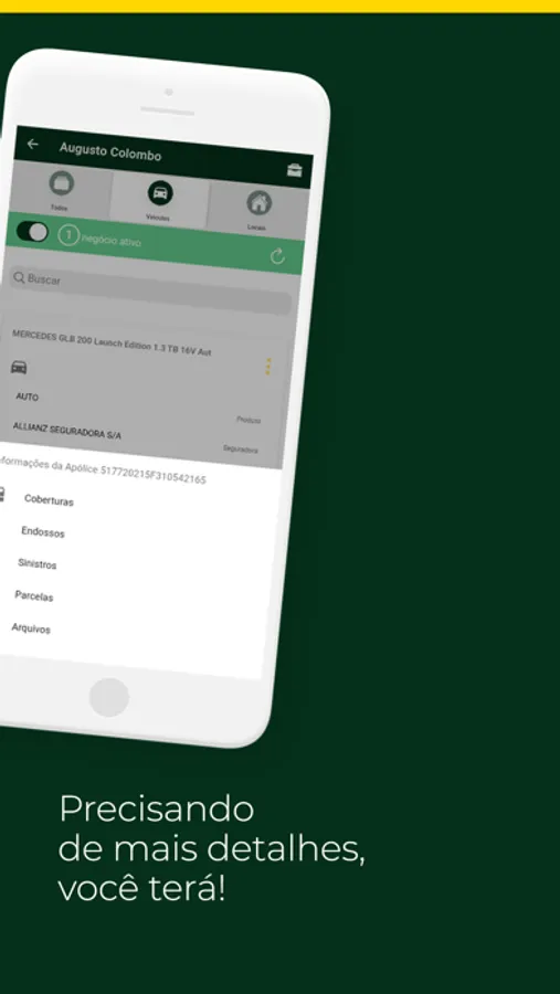Filtro de Documentos ativos e inativos, a fim de manter um histórico dos documentos do cliente; de parcelas pagas, agendadas e vencidas, de Sinistros em andamento e finalizados; Informações dos endossos realizados; Baixa de Arquivos (Avulsos e Vinculados): Arquivos correspondente ou não a uma Apólice.