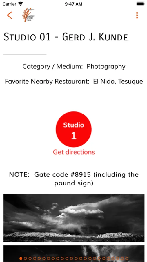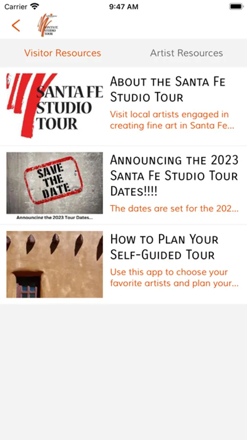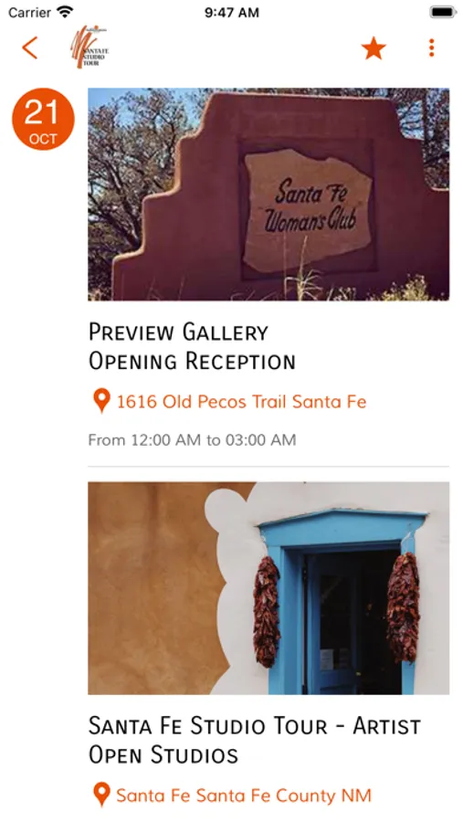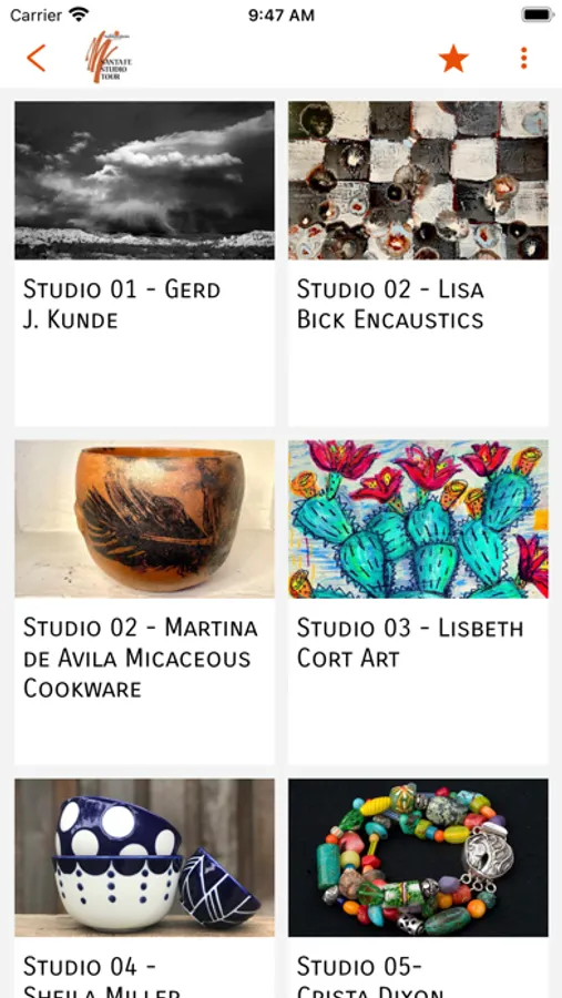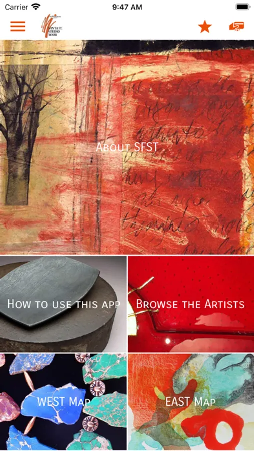 Peruse the artists and their work and/or search by artist name, medium or category of art. Plan your tour by bookmarking your favorites, navigate to the studios using the interactive map. Learn about the events scheduled during the week between Tour weekends and contact the artist to reserve your spot. Not in town during the Tour? Use the app to contact your favorite artists year-round.