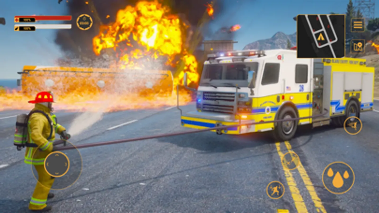 In the game FireFighter Squad, you have to try on the role of a real fire brigade worker in a large American city. Players will experience exciting tasks, more than 30 different locations, inspired by the landscapes of the US West Coast. Drive carefully recreated Rosenbauer America vehicles, extinguish fires and have fun with the game.