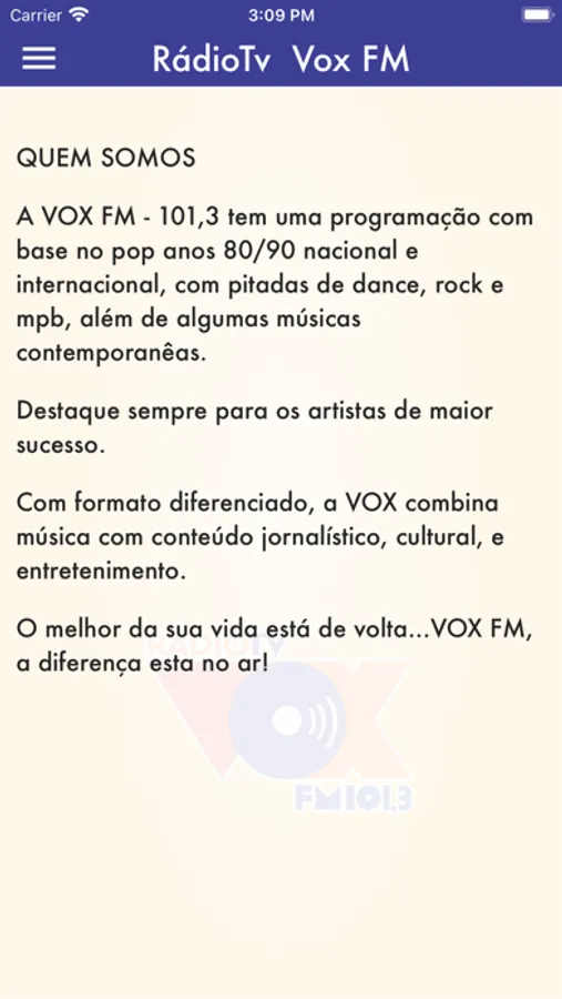 Todos adoram relembrar de sua infância e juventude, e a VOX FM traz tudo dessa época de volta! Sempre de uma maneira alegre e vibrante, de forma nostálgica e não melancólica.