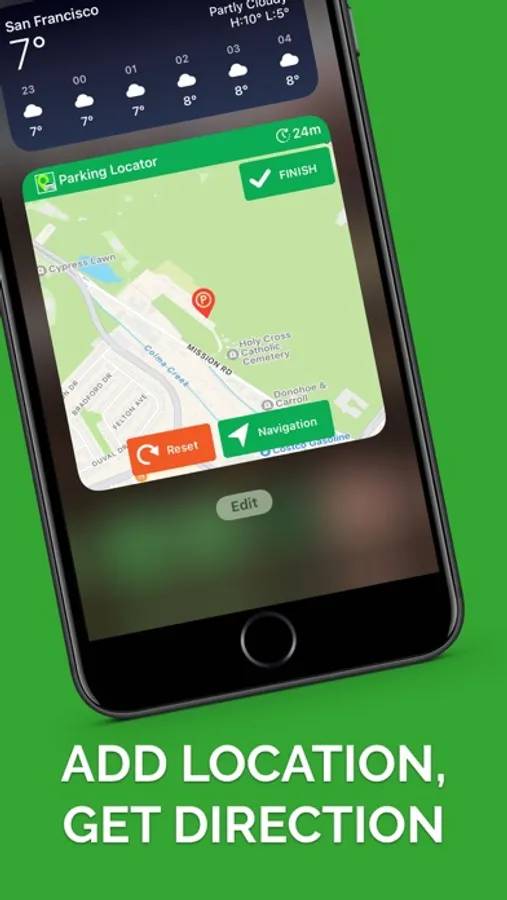 Save parking location with one click. Drag and drop pin to set exact parking position. Get directions from widget.