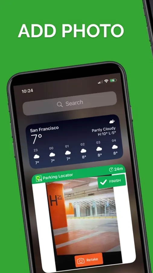 Parking Locator is the ultimate parking assistant, save parking place or photo track from app widget.