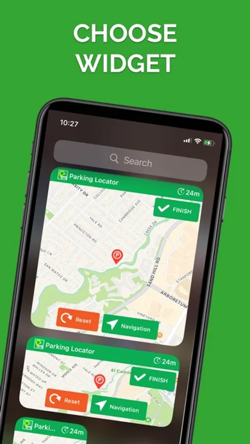 App has 3 different size of widgets. Choose whicever you want and add your home screen. Track parking time, get directions or make change.