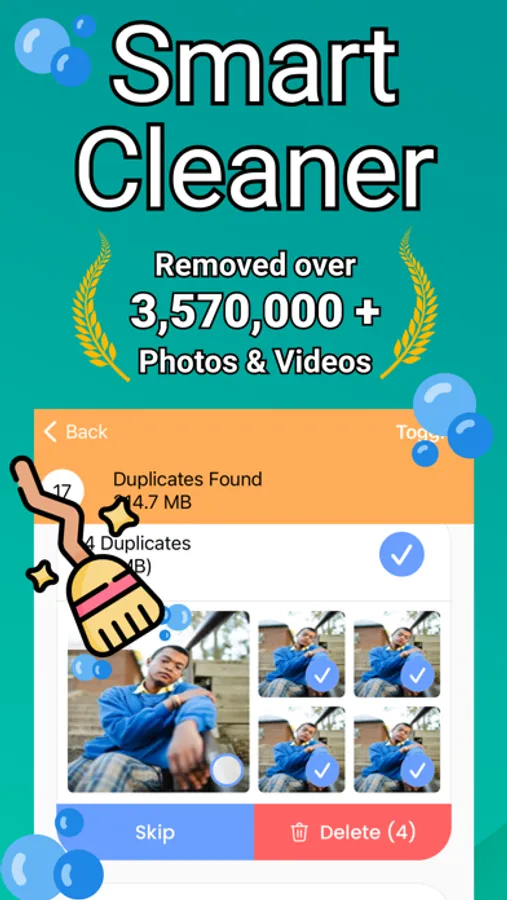 -- Bulk Photo Remover - Group by day, month, or year, or delete them all with just one tap.