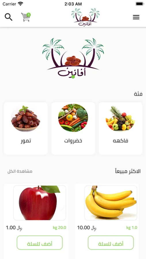 أول تطبيق من نوعه يجمع مزارع ومعامل التمور في المملكة العربية السعودية في مكان واحد . عالم التمور ومشتقاتها بين يديك بضغطة زر. توصيل سريع و بأسعار رمزية