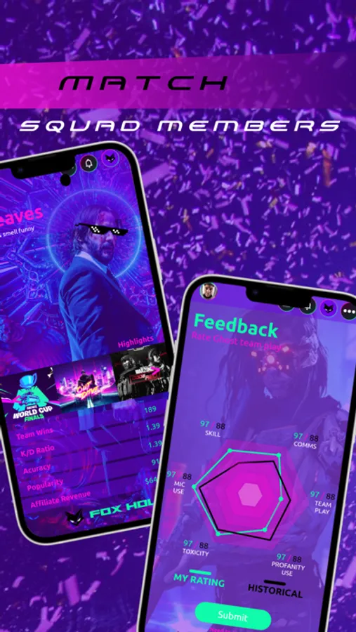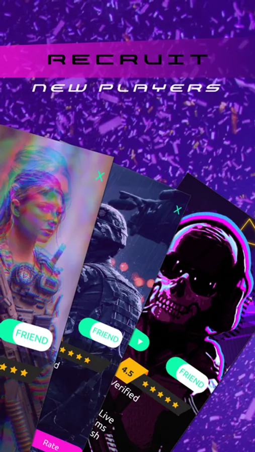 Top quality match-making on your phone with custom player search, squad chat, and thrilling swipe based player profile cards. Experience the thrill of finding new friends on the worlds premier match making app for the most popular team based tactical battle royale games. Now on your phone for easy on the go fun.