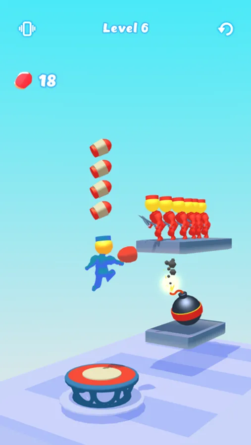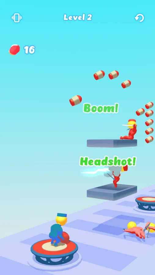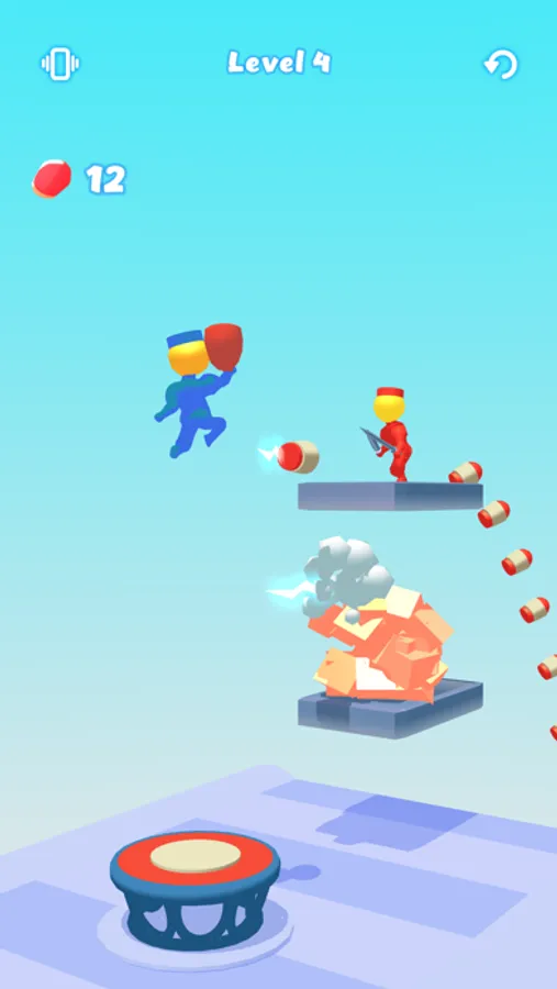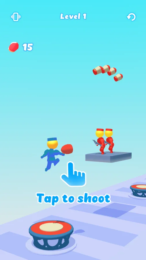 Jump on the trampolines and shoot the enemies!
