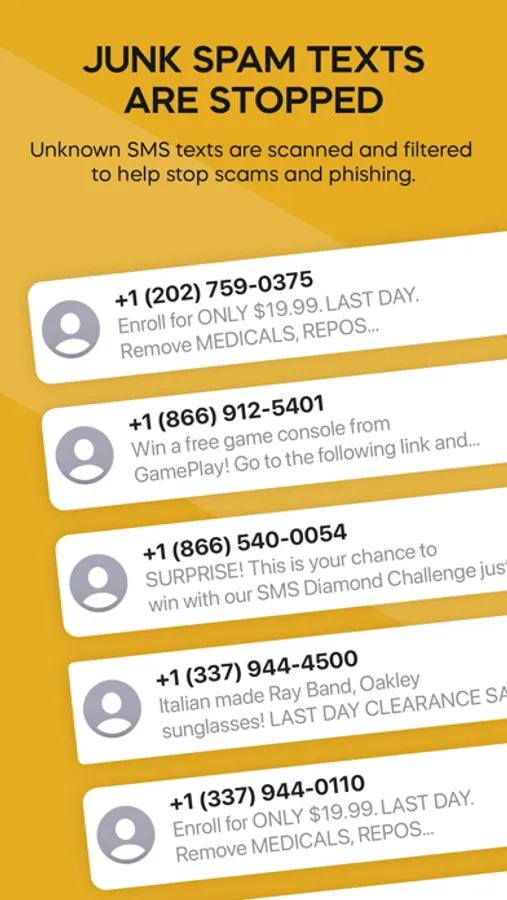 - Spam and phishing texts are filtered.