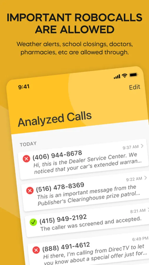 - Bad callers are instantly stopped. Contacts get through like normal. Unknown callers are screened.