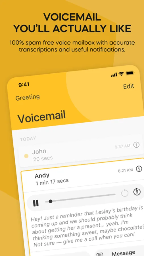 - Supercharged, spam-free voicemail with useful notifications and transcriptions.