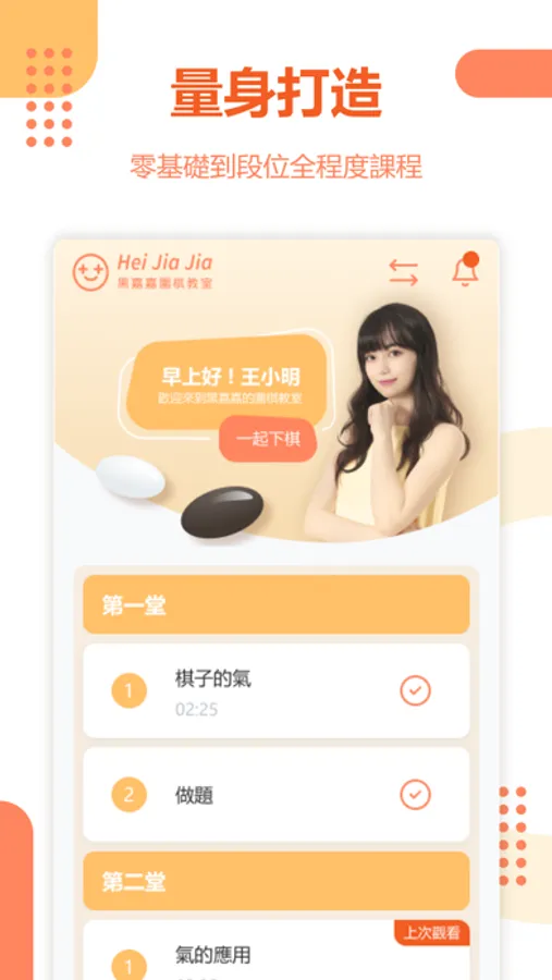HJJ GO is a comprehensive Go learning app developed by Hei JiaJia (Joanne Missingham) and the Goer Tech Team, alongside a team of top professional Go players, educational experts, and AI engineers.