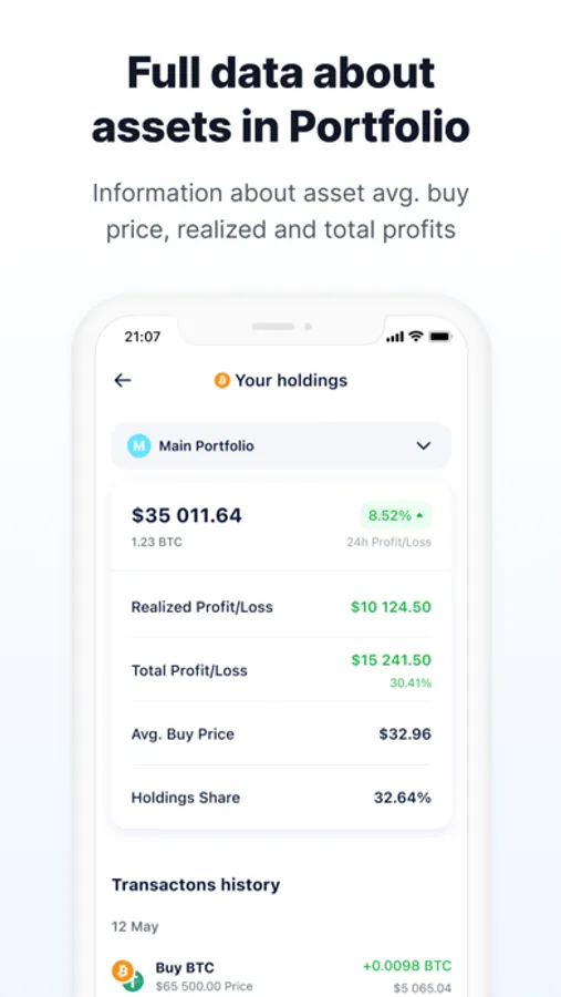 Through our app you can also track and manage your crypto portfolio anytime anywhere. Just select the cryptocurrency you want to add to your list, type in the price, quantity, and you`re ready to go. Add as many crypto`s you want, including EOS, Bitcoin Cash, Litecoin, Doge Coin, Tether, Cardano or Avalanche.This way you`ll always be on track with your investing performance. It is a useful feature for day-traders, long or short-term investors, as well as crypto-spectators and newcomers who wish to create a test portfolio and see how they do.