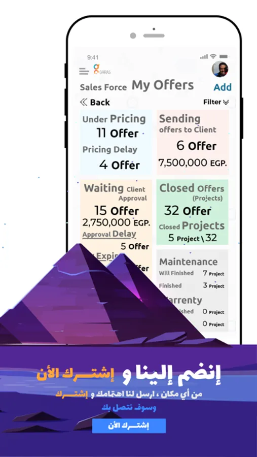 تطبيق حلول GARAS يساعد في تبسيط الأعمال اليومية من خلال تقليل الوقت وتوضيح البيانات والموارد المطلوبة.