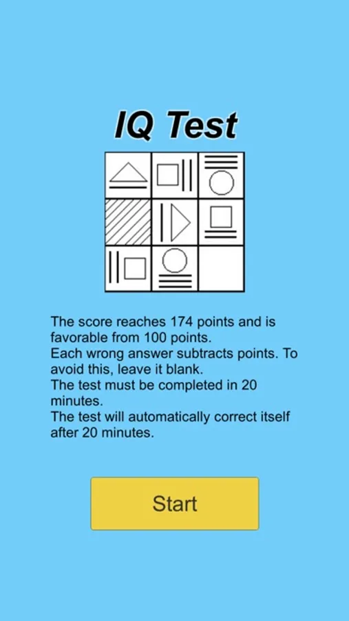 After the maximum time, even if the test is not finished, your IQ will be calculated automatically.