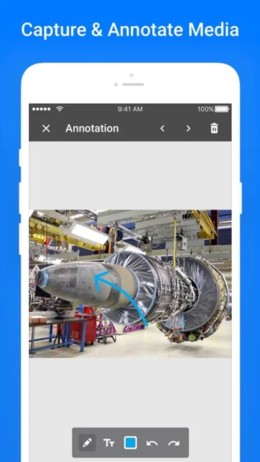 Collaborate with Colleagues Remotely - Initiate live video calls with colleagues, remotely control the camera, capture photos, and draw live annotations to provide guidance.