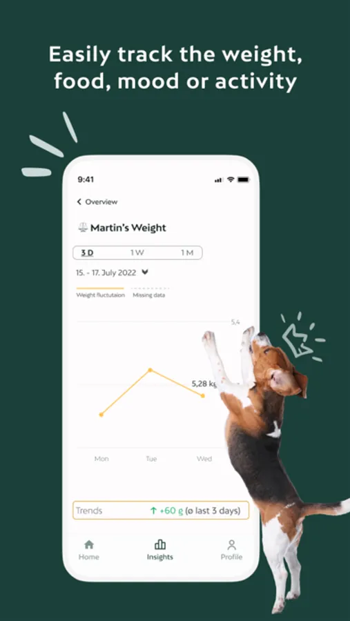 * Weight Insights: When health problems occur, our pets tend to gradually lose weight in a way that is not visible to the naked eye. Being able to identify weight fluctuations, in combination with other symptoms, can help you recognize health problems sooner. Additionally, weight is the leading cause for the most recurring diseases in cats and dogs (arthritis, diabetes, urinary infections, etc.). By regularly tracking weight, our app can give you insights into your pet’s natural weight fluctuations, and we will notify you when significant and concerning changes have been noticed.