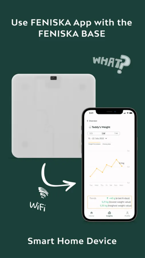 * As an optional purchase, you can order the FENISKA Base, a smart device that automatically monitors your pet’s weight.