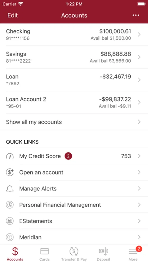 •Transfer funds between accounts