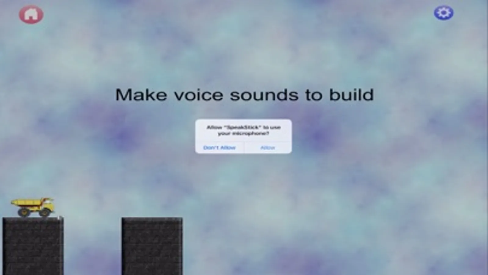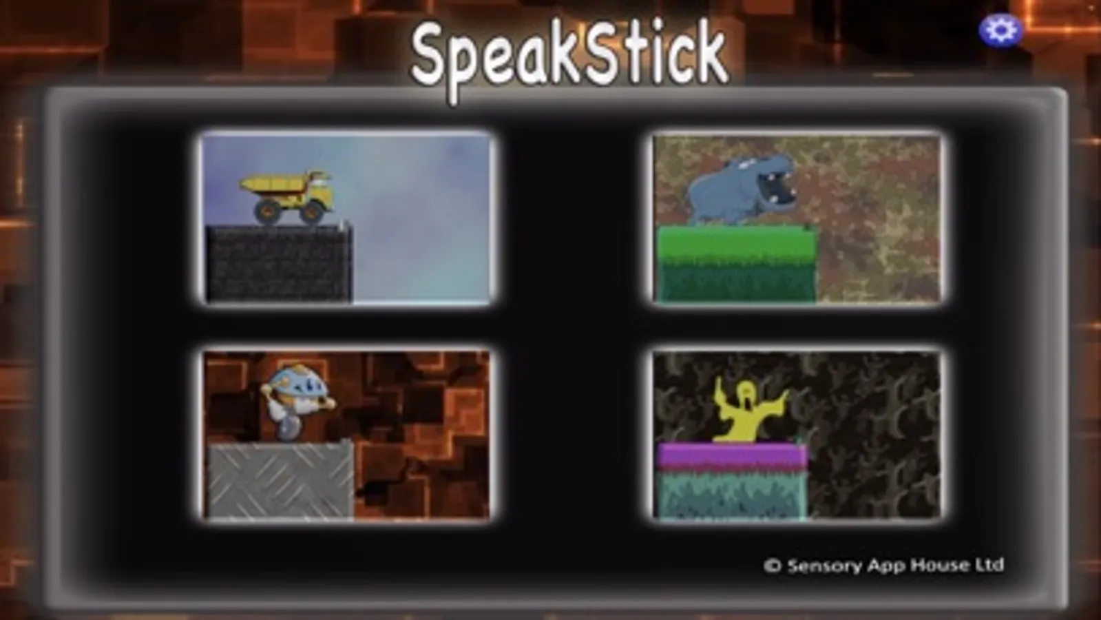 SpeakStick is a new speech development activity, for use by speech therapists, specialist teachers and parents. Play the game and "grow" a stick bridge to move across by making continuous voice sounds. The Sound Settings can adjust for the sound level, the frequency range or fricatives only (zzz, shh etc)