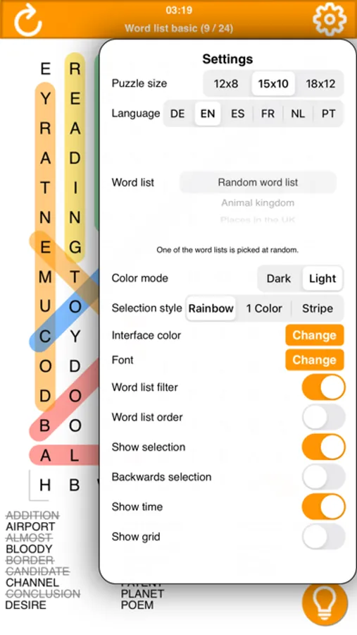 - Many word lists: randomly picked or manually chosen. Examples: commonly used words, extensive word list, places in USA, places in UK, animal names, top movies, world brands, states and capitals of USA, sports, holidays, songs, artists, food and drinks, science, chemistry, house