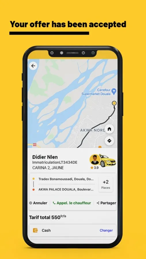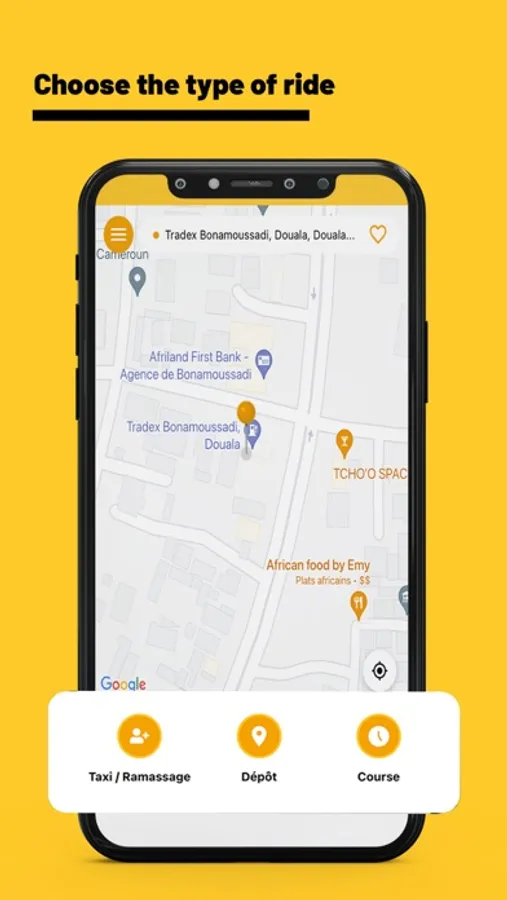 Order a cab instantly 24/24 wherever you are in Yaoundé or Douala!