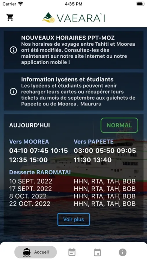 - Consulter les horaires entre Tahiti et Moorea de toute l'année, organisés par semaine, et mis à jour en temps réel.