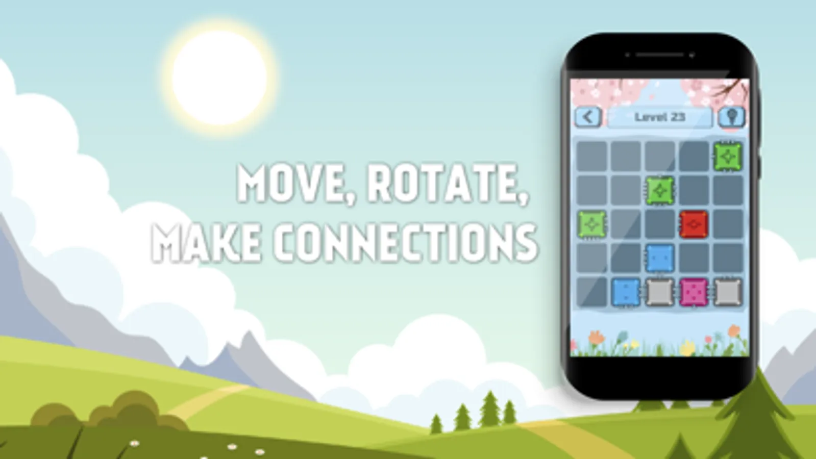 This is an indie game made by studio of two persons. The game is a simple and clear logical puzzle with a convenient and intuitive gameplay. The main sense is to rotate or move the elements of the game in such a way that they are connected to each other into one single whole. Every connection must find a match for itself.