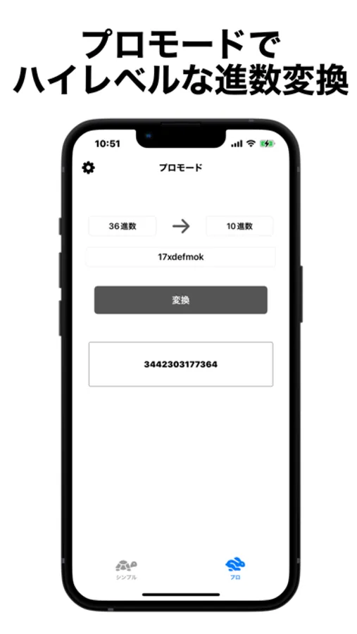 プロモード...2進数から36進数のハイレベルな数を自由自在に変換できます。