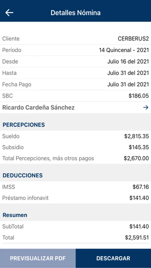 de nómina en formato PDF y XML.