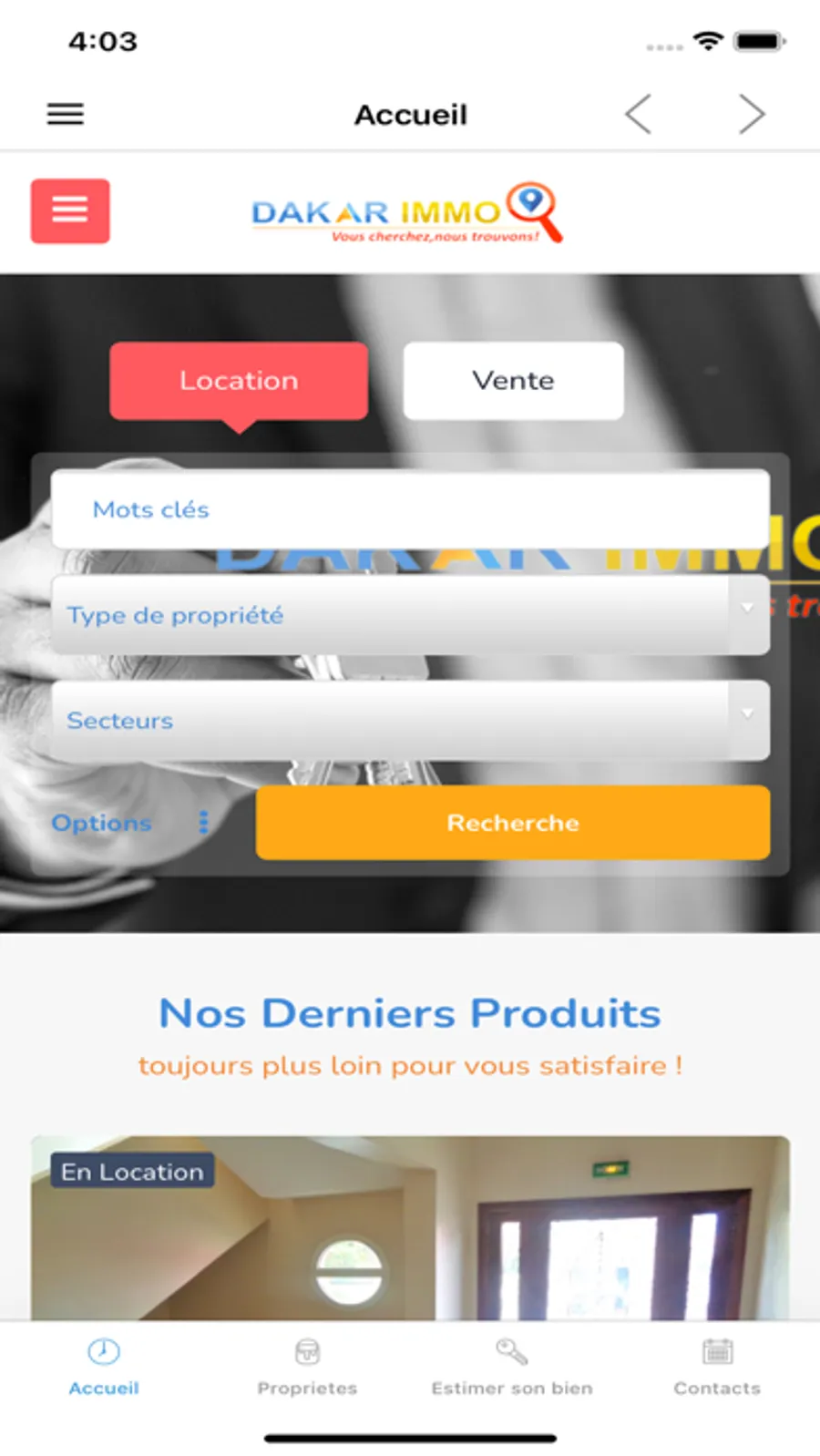 Dakar Immo est une entreprise de professionnels maitrisant les cadres réglementaires du secteur de l’immobilier au Sénégal. Dakar Immo, une référence en transaction immobilière de tout ordre, vous propose des services personnalisés de gérance, de location ou de vente de vos biens immobiliers. Avec un concept immobilier novateur tel que la géolocalisation de tous nos biens, en parfaite adéquation à l'ère du numérique. Soucieux de votre confiance, Dakar Immo vous assure un suivi complet et personnalisé dans la réalisation de vos projets tel que l’achat, la location, le premier investissement immobilier etc.