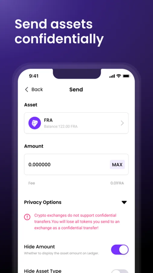 Findora lets you maintain privacy even on a public blockchain. Using Zero—Knowledge Proof technology, our wallet supports confidential transfers. With confidential transfers, the amount of tokens you send (or receive) can be hidden on the transaction log that is recorded on the blockchain.