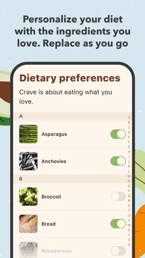 Just like a visit to a good nutritionist, Crave will offer you a detailed meal plan that fits your food preferences and helps you reach your goals. Using whole foods you find in any supermarket and the ongoing support from our nutritionists we promise you will never track calories nor spend hours reading recipes or figuring out portion sizes! Get healthy, manage your lifestyle and feel great with Crave!