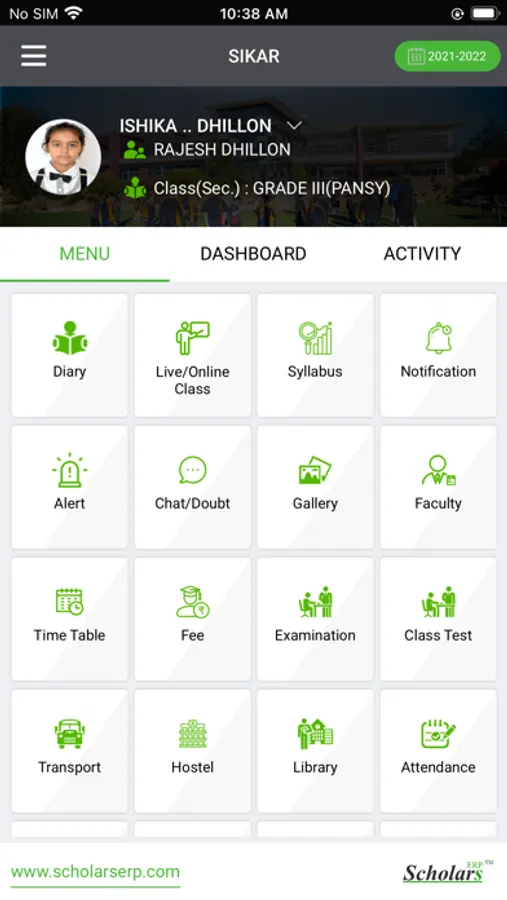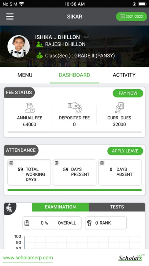 • Attendance status: Shows the days the student has been present, absent and on leave along with school holidays in a particular month.