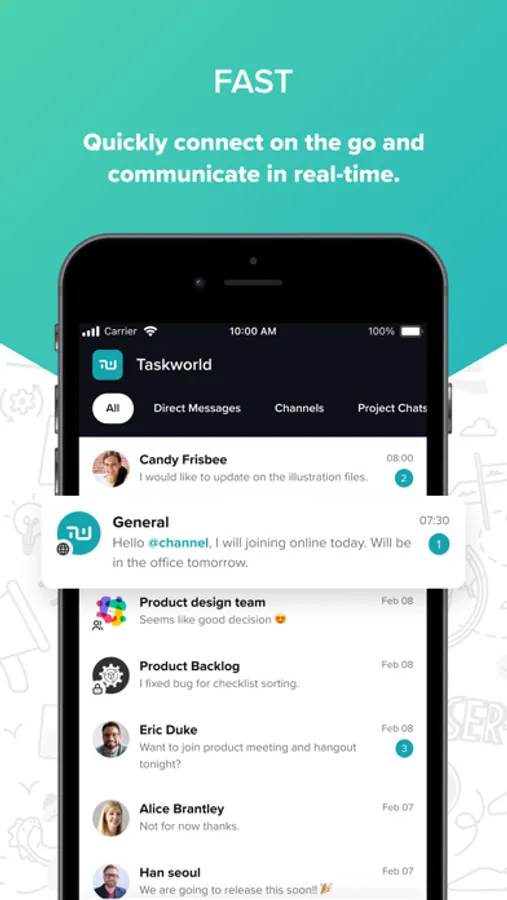 Taskworld Chat is an app designed to enhance communication and collaboration within teams and departments. As a complement to Taskworld's Project Management platform, it offers a lightning-fast, beautiful, and easy-to-use interface for better communication. Taskworld Chat allows team members to share ideas, files, and feedback in real-time, making it easier to stay on top of tasks and keep projects moving forward.