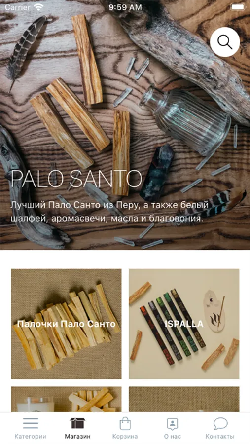 PALOSANTO – интернет-магазин ароматической этнической продукции. Источник нашего вдохновения — священное дерево шаманов Амазонии — Пало Санто! У нас представлен самый широкий ассортимент товаров с этим неповторимым ароматом: деревянные палочки, эфирное масло, свечи из натурального воска, мыло, саше, спрей, бомбы для ванн. Экологичность упаковки, органический состав, этичная заготовка сырья — этими принципами мы руководствуемся при создании наших волшебных продуктов.