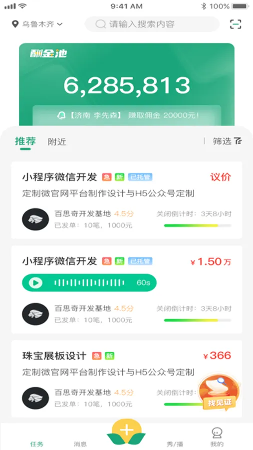 包米团面向知识交易、众包、家政、演艺等百行万业,以快捷、灵活的方式建立需求方与服务方的连接,通过轻量化、自组织的线上协同工作模式,实现人才价值与人才服务的线上可交易化,开辟全新的人才价值交易与增值模式。