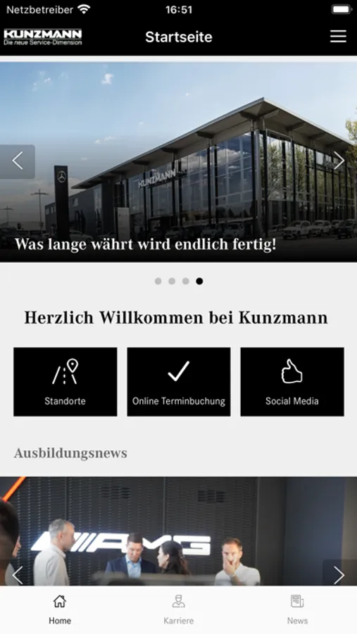 Sie können schnell und einfach Termine vereinbaren, nach Fahrzeugen suchen, in unserem Onlineshop stöbern oder Informationen zu aktuellen Events und Neuigkeiten aus der Kunzmann-Welt abrufen. Lassen Sie sich nichts entgehen! Auch der Bereich Karriere bei Kunzmann wurde in der App berücksichtigt.