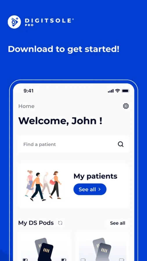With this app, you can log into your account, manage your DS Pods and patients, launch a gait analysis and check your patient's result.