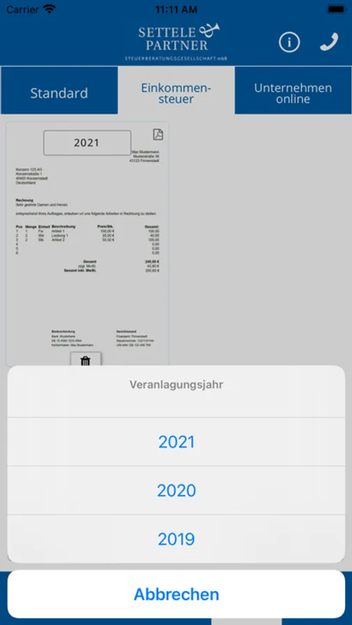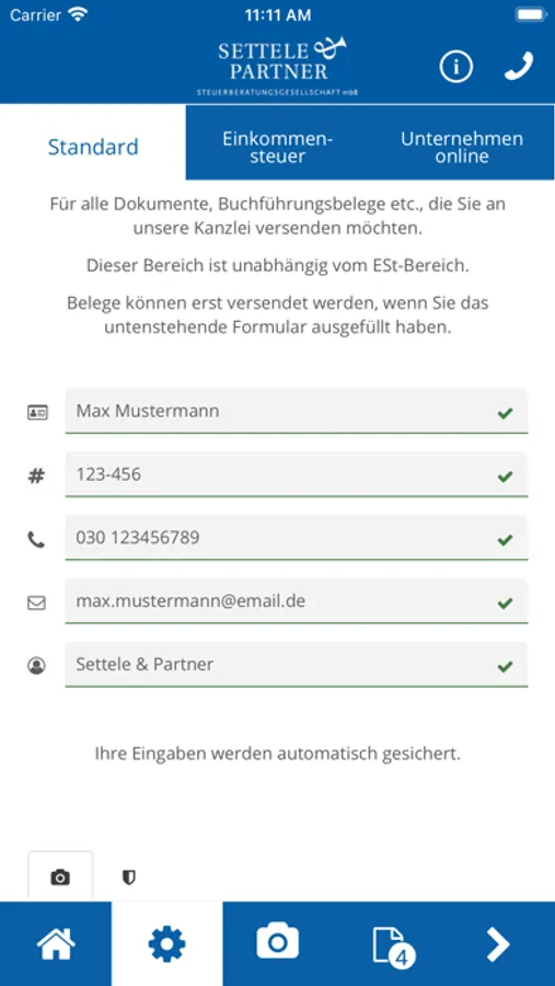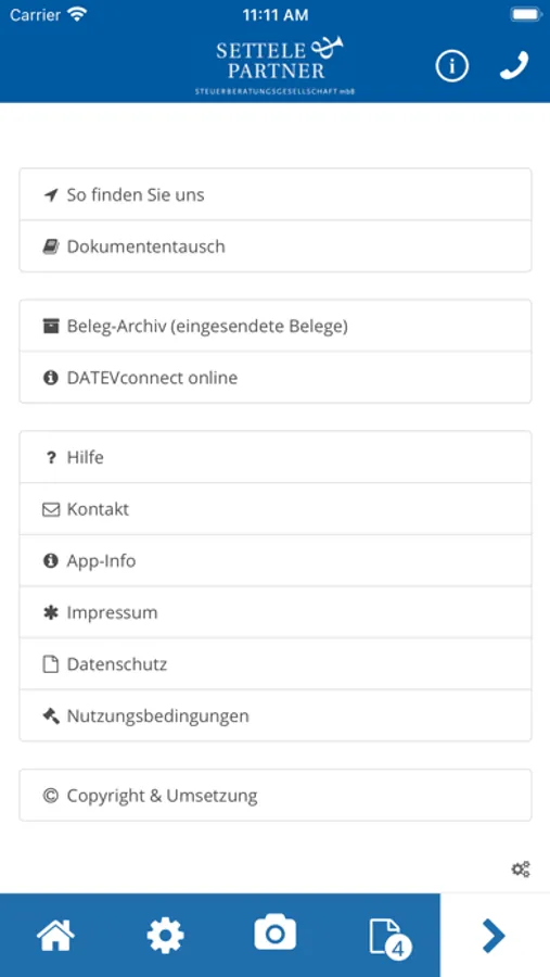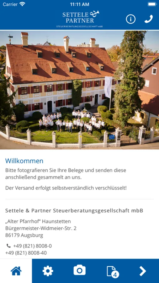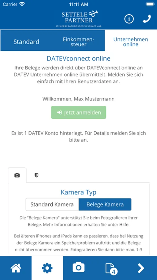 Mithilfe dieser App können Sie Belege und Dokumente schnell, sicher und komfortabel an Settele & Partner gesendet werden.