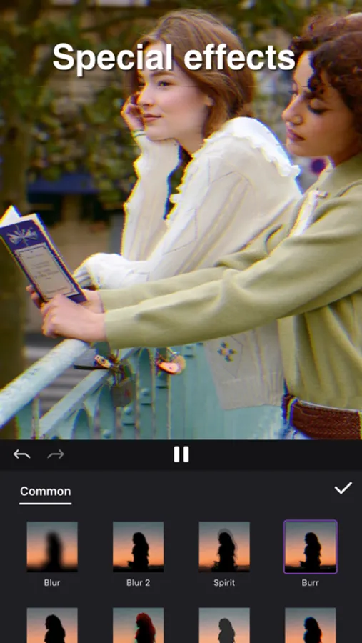 - Unique effects such as glitch, noise, beats, retro DV, etc.