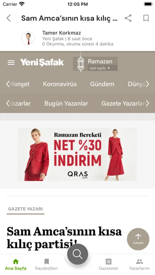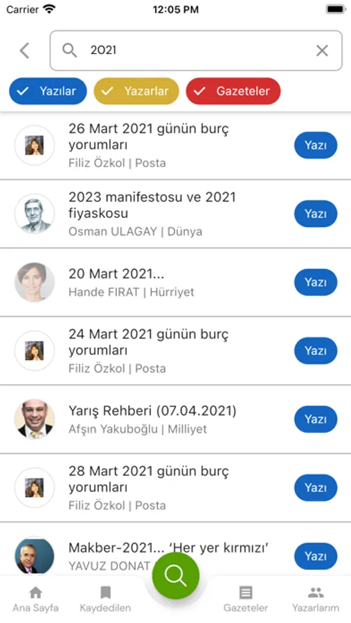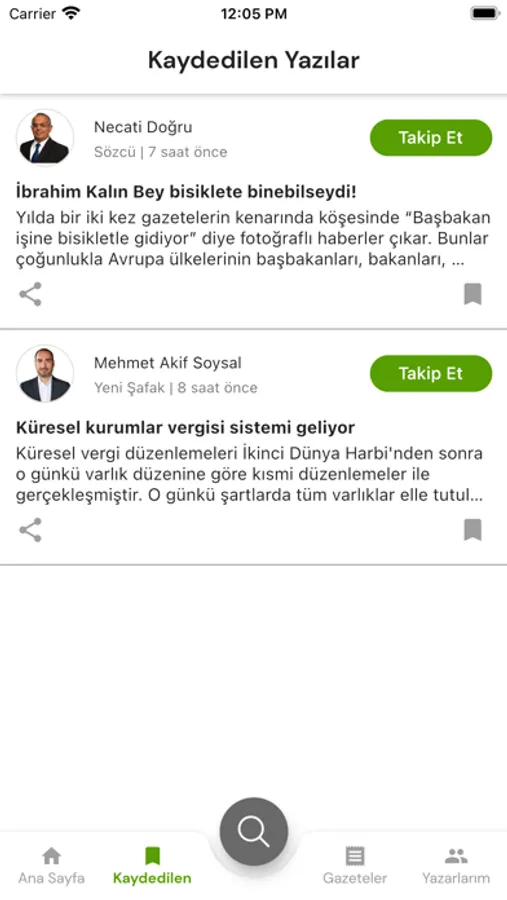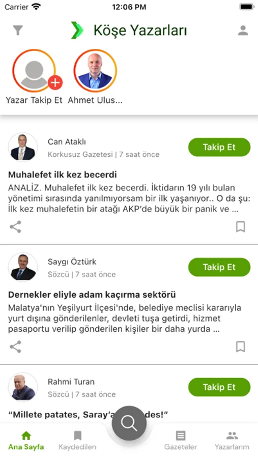 Ara - Keşfet : Bu ekranımızda uygulamamızda bulunan köşe yazılarını, yazarları ve gazeteleri farklı bir deneyimle tek çatı altında erişebilirsiniz. Ayrıca arama özelliği sayesinde ilgili yazarlara ve yazılara çok kolay bir şekilde ulaşabilirsiniz.