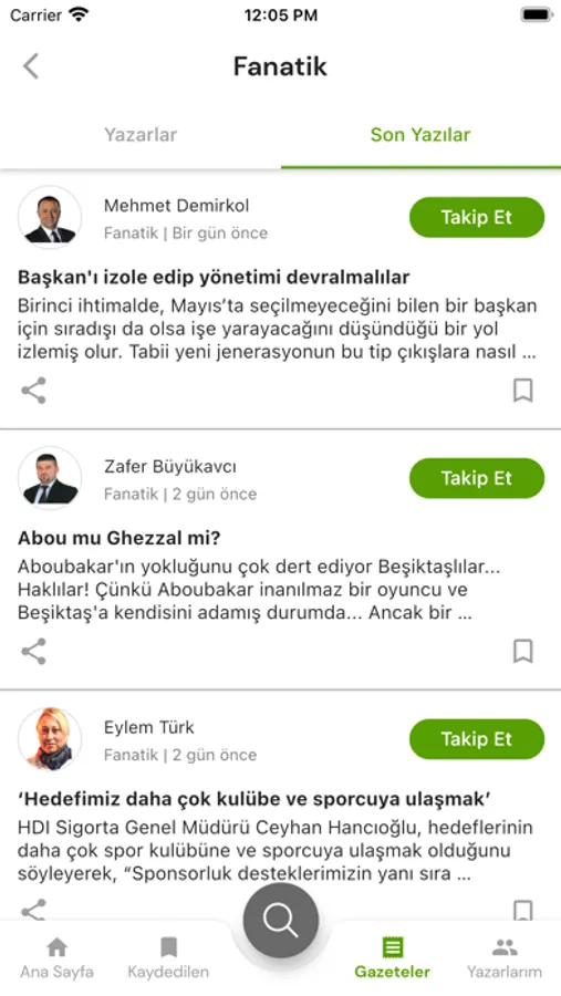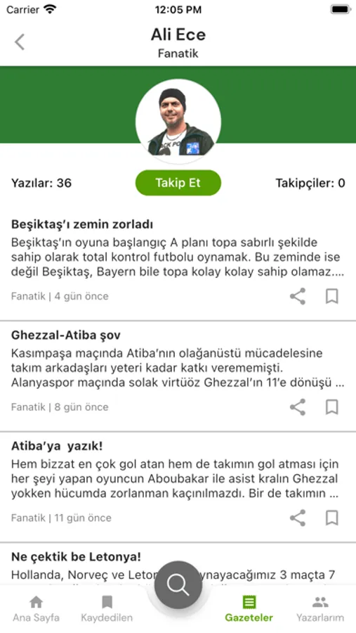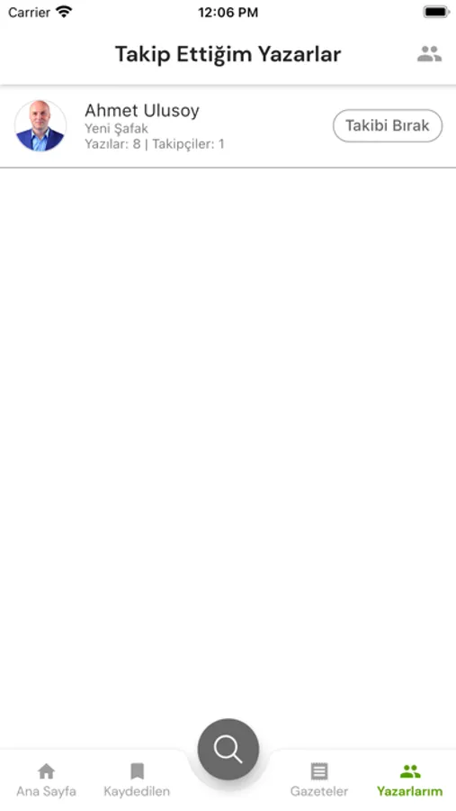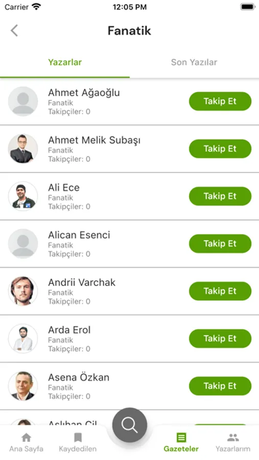 Yazarlarım : Bu sayfada takip ettiğiniz yazarları görebilir, yazılarına ulaşabilir veya takipten çıkabilirsiniz.