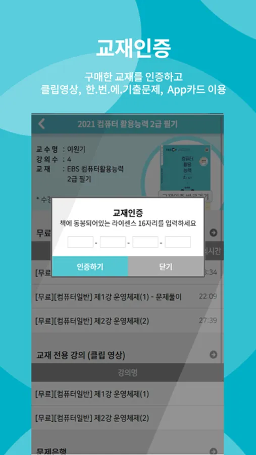 - 구매한 교재의 인증코드를 활용하여 교재전용 콘텐츠(앱카드, 클립영상) 이용
