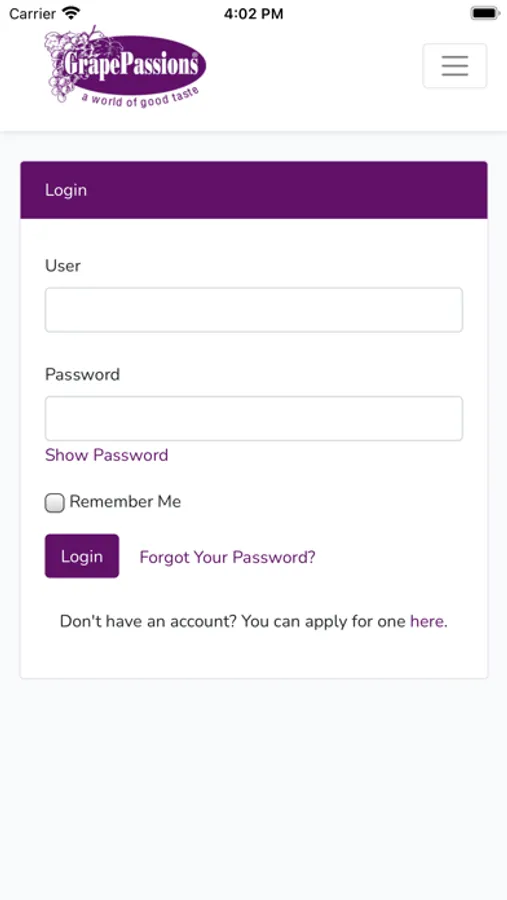 The Grape Passions app allows you to manage your account, browse wines, place an order and view your account history on the go. To access this application you will need to have a Grape Passions account. If you do not have an account please get in contact with the office to begin this process.